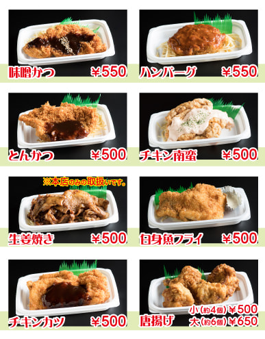 ※ お弁当にはごはんがついています。(ごはんの大盛+100円)